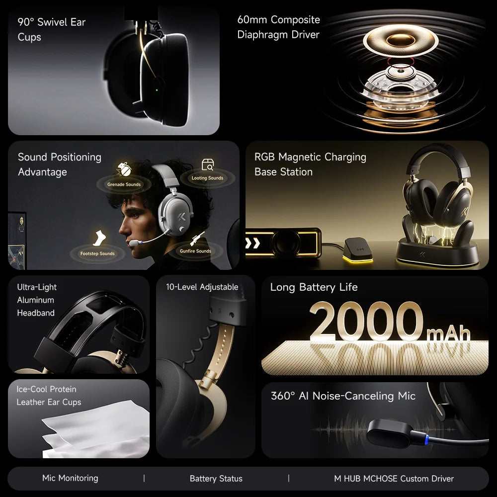 With just 15ms latency, MCHOSE® TOPSPEED wireless technology ensures audio is delivered instantly — so you can react faster and move first in every match.