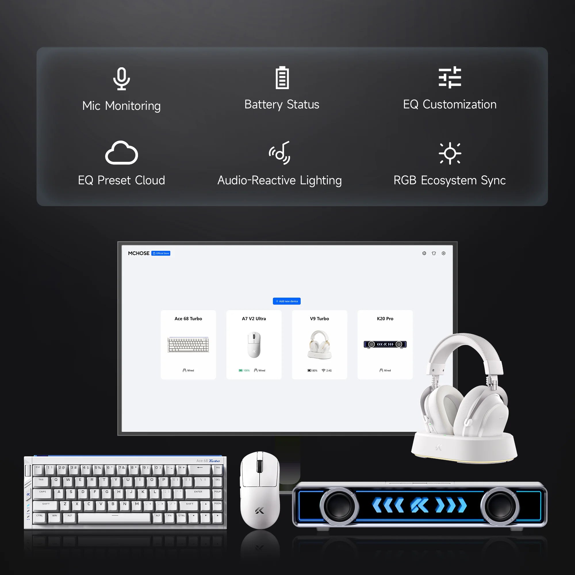 The MCHOSE software gives you full control over your audio experience.Fine-tune EQ profiles to highlight critical sounds and sharpen positional awareness when it matters most.